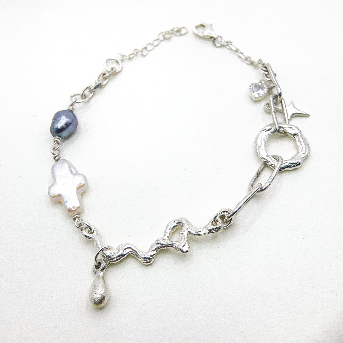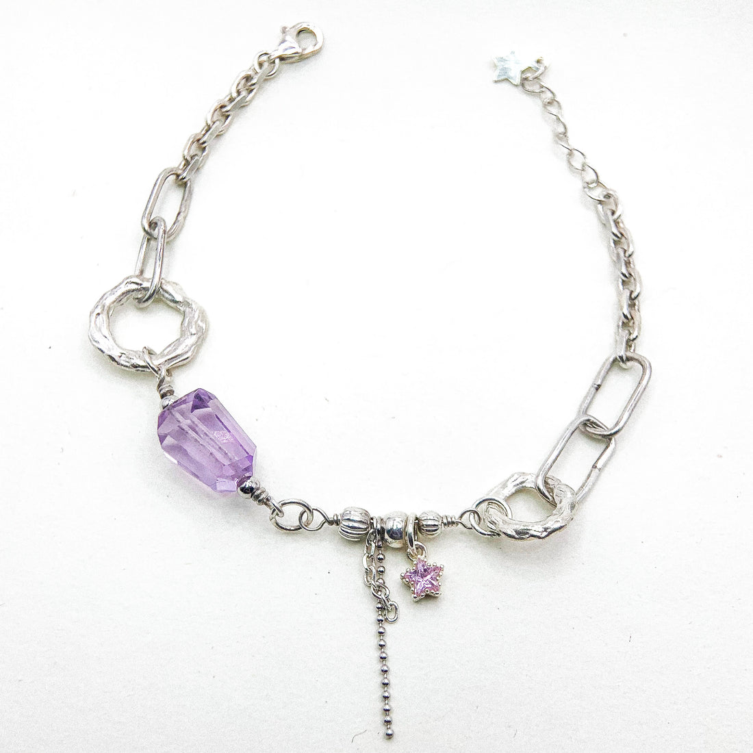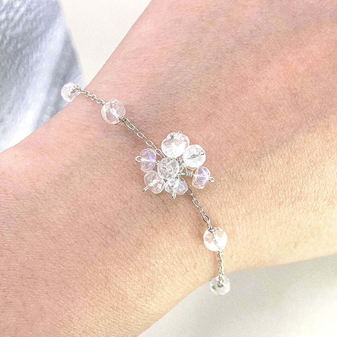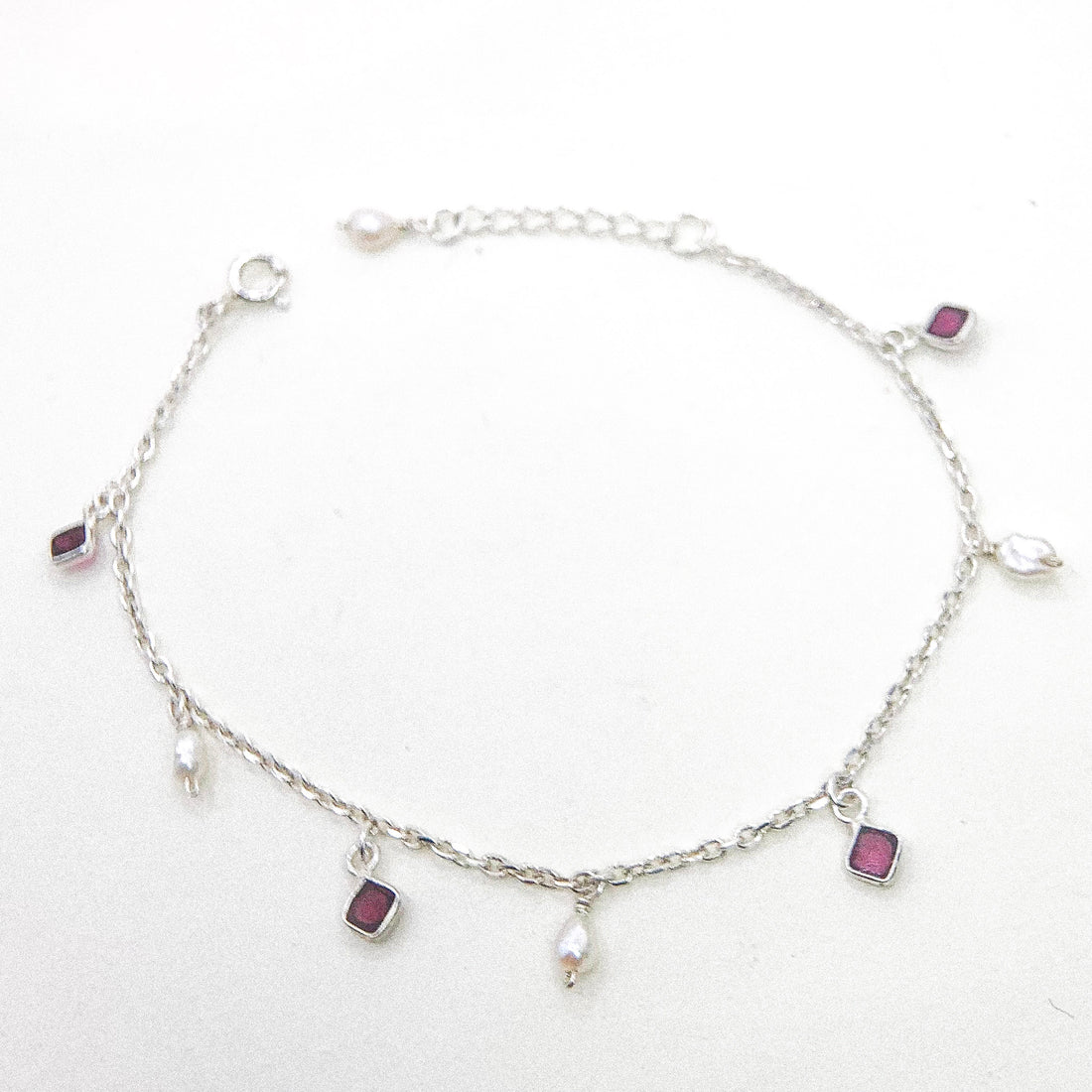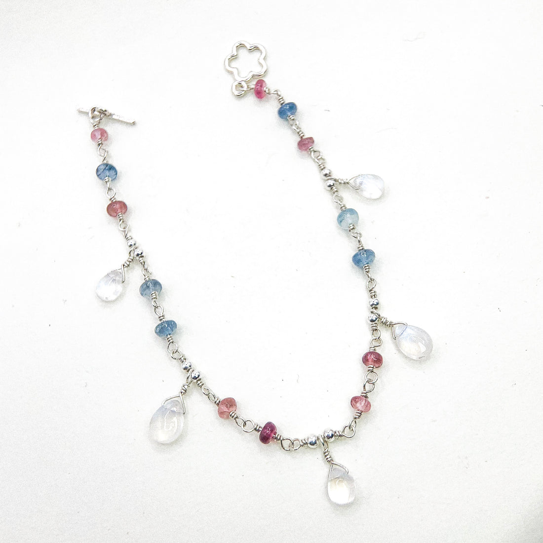 TOURMALINE AND MOONSTONE DROP SILVER BACELET