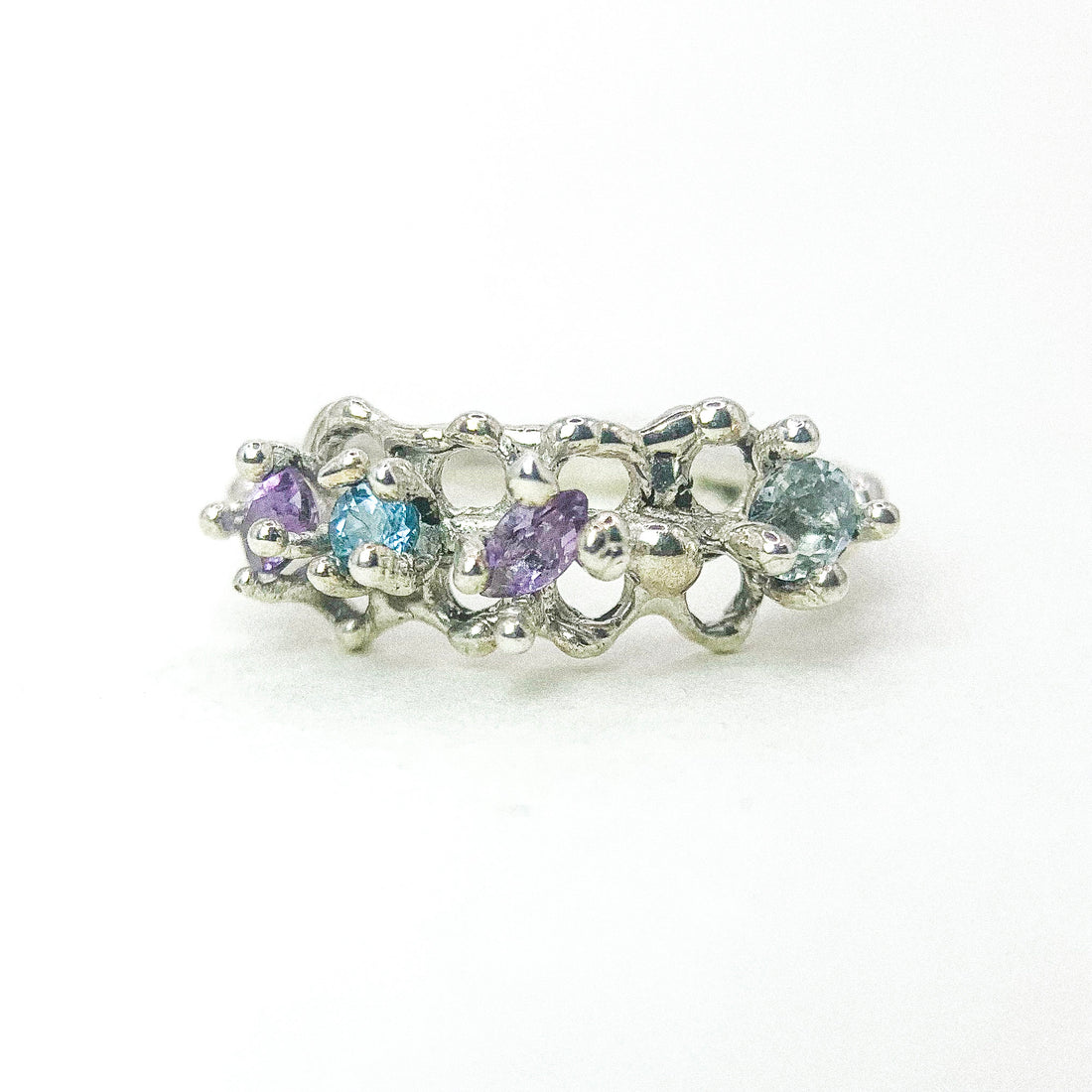 TOPAZ AMETHYST BUBBLING SILVER RING