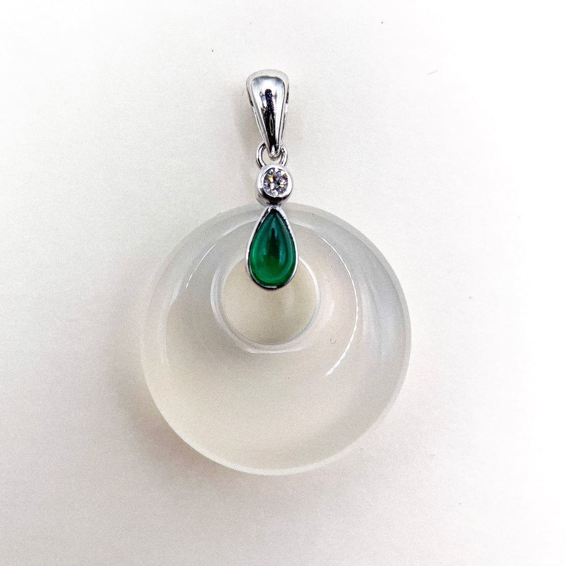 WHITE AGATE DROP JADE SILVER PENDANT