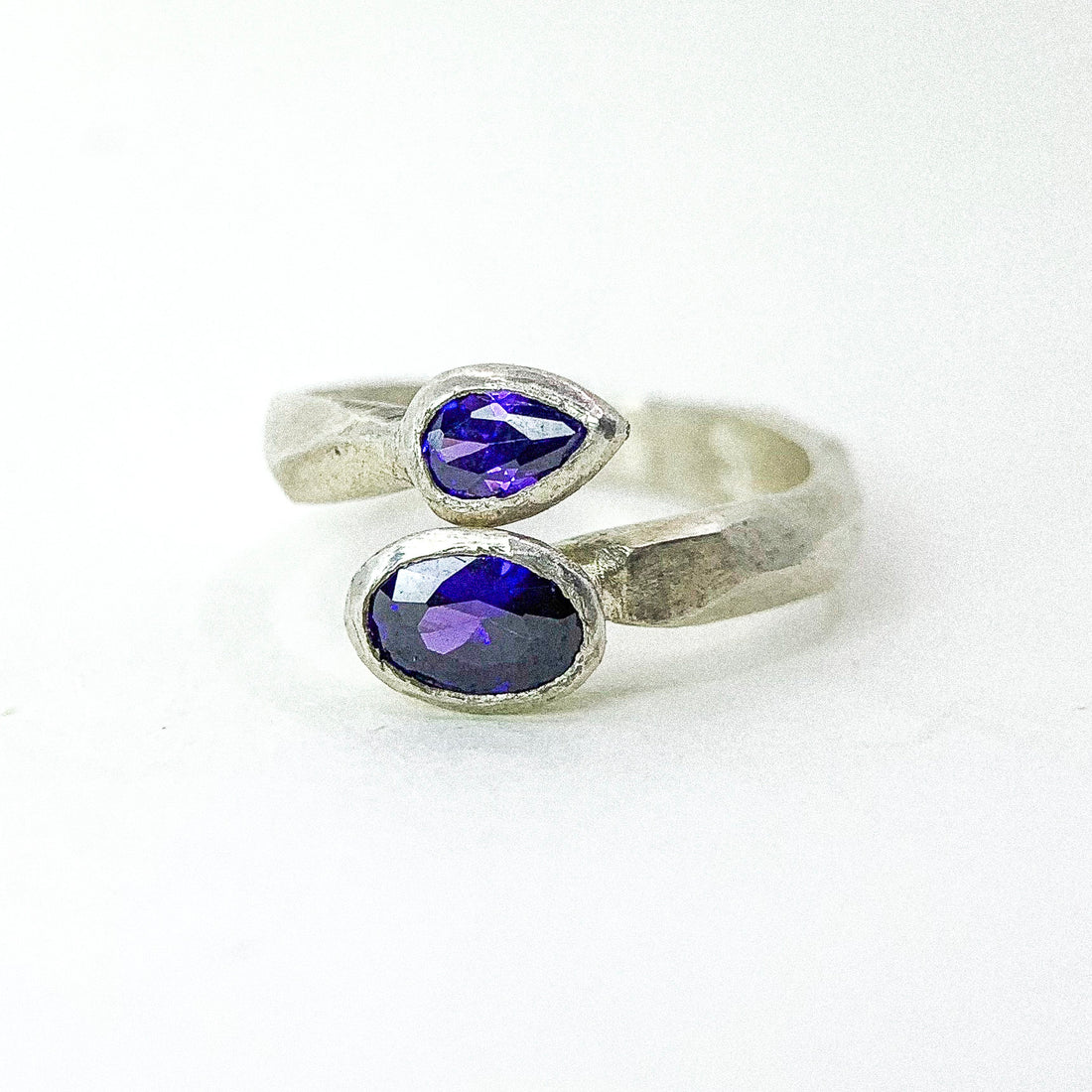 DUAL AMETHYST OPEN SILVER RING