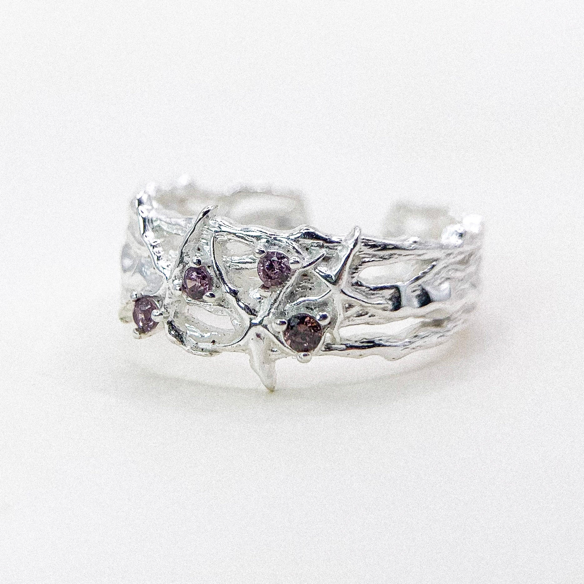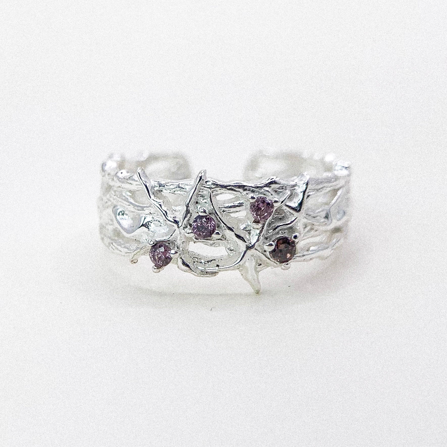 Each piece is handcrafted in Vietjeweler’s Hanoi workshop, featuring an intricate vine-inspired texture adorned with sparkling CZ gems. Delicate yet full of character, this ring blends organic artistry with a touch of subtle shimmer.