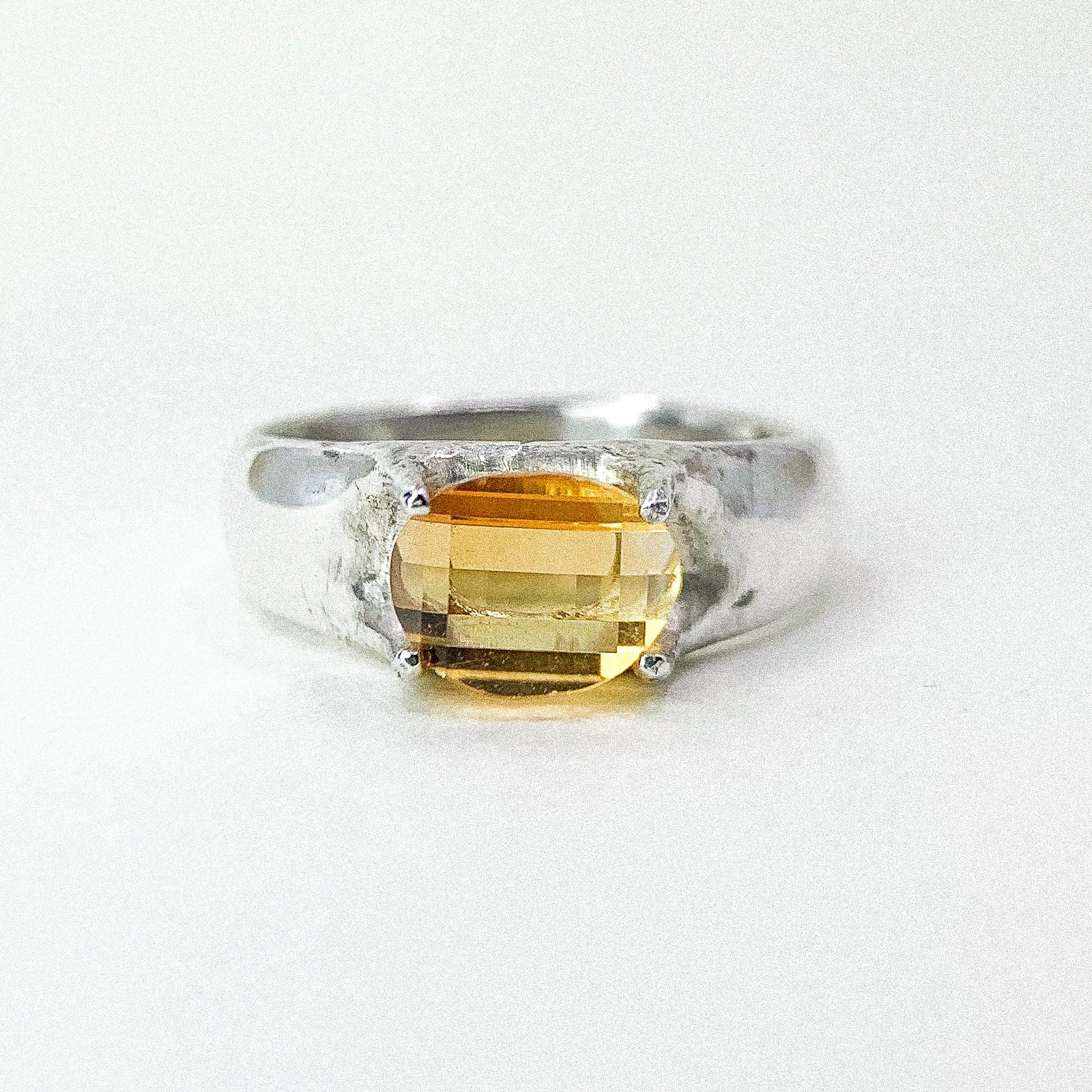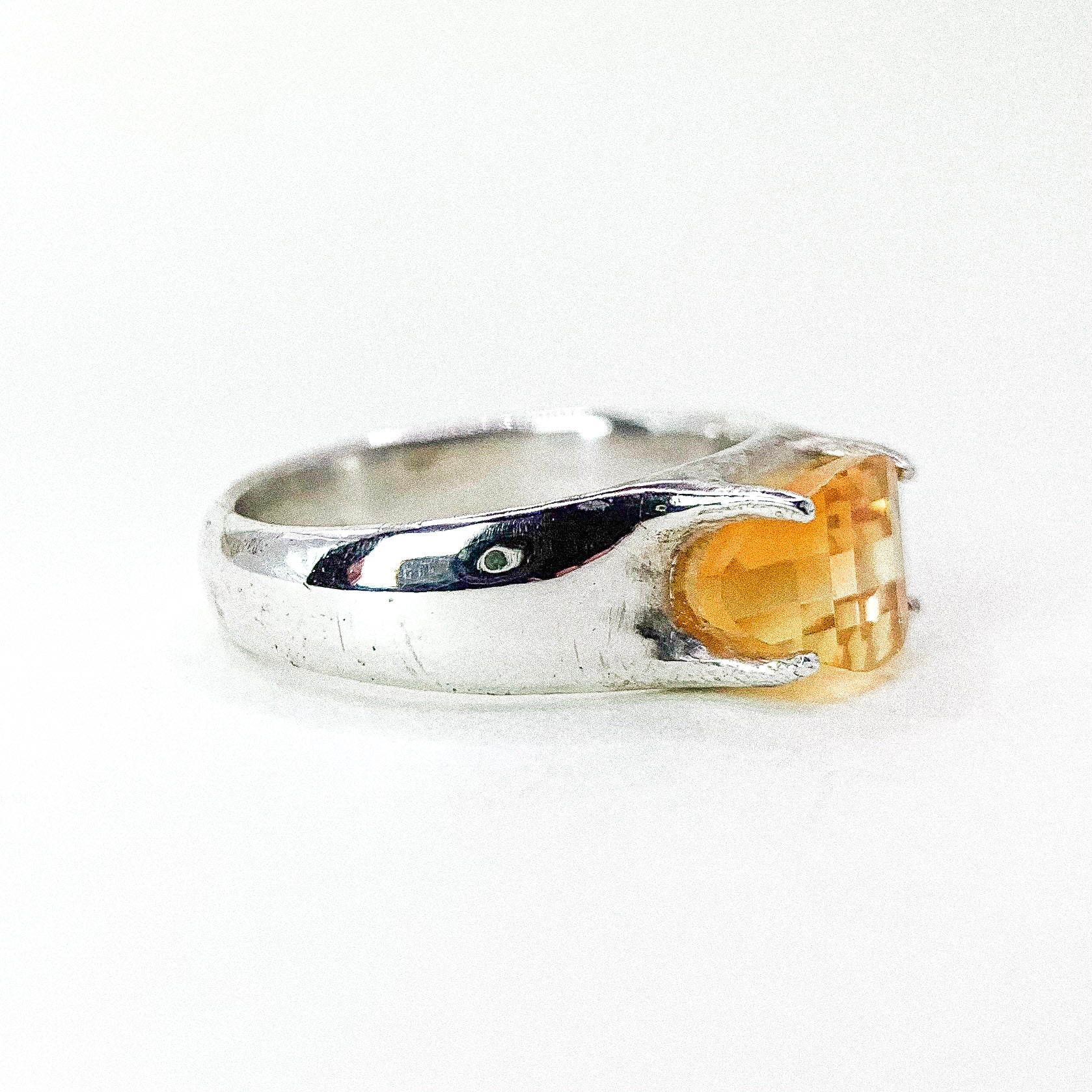 CITRINE FOUR CLAW RING SILVER