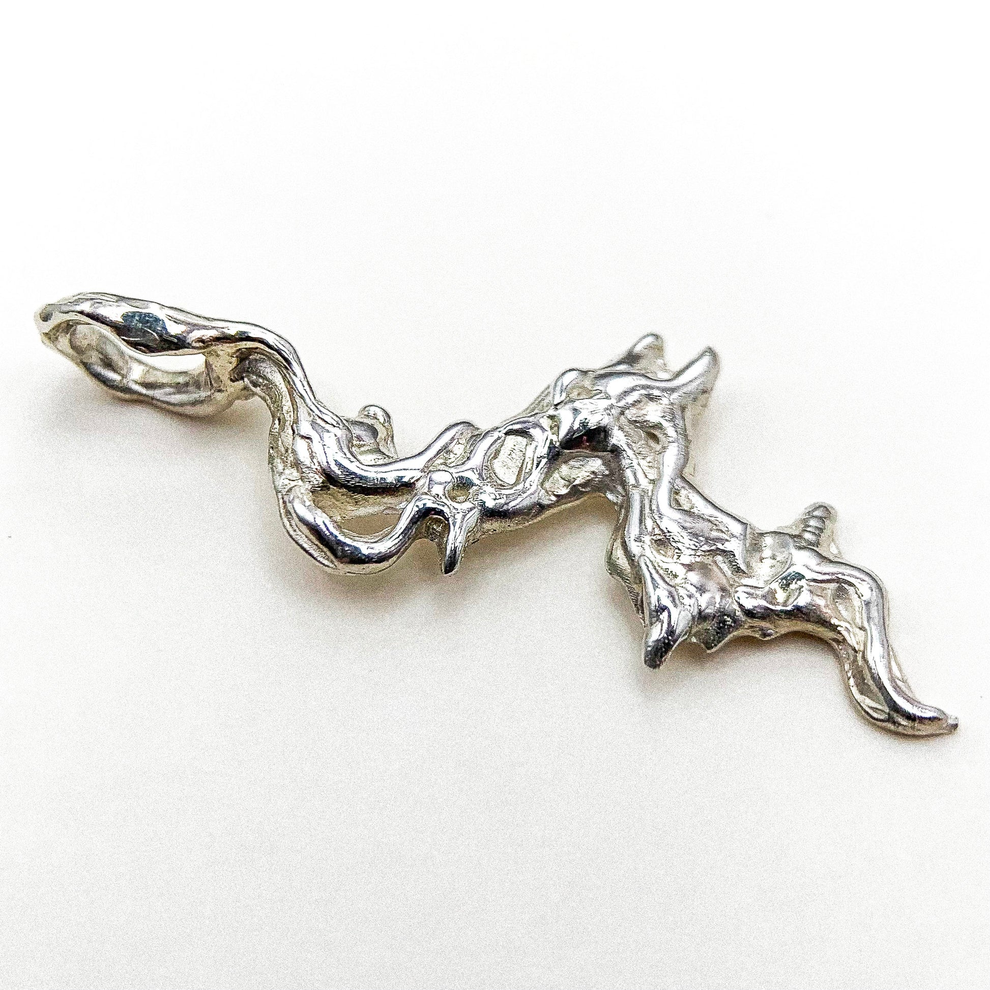 Each piece is handcrafted in Hanoi by Vietjeweler artisans, inspired by the fluid movement of waves and fire. The pendant’s twisting, organic form symbolizes energy, transformation, and freedom — a harmony between ocean flow and untamed flame. Unique in every curve, it carries the spirit of nature’s raw design.