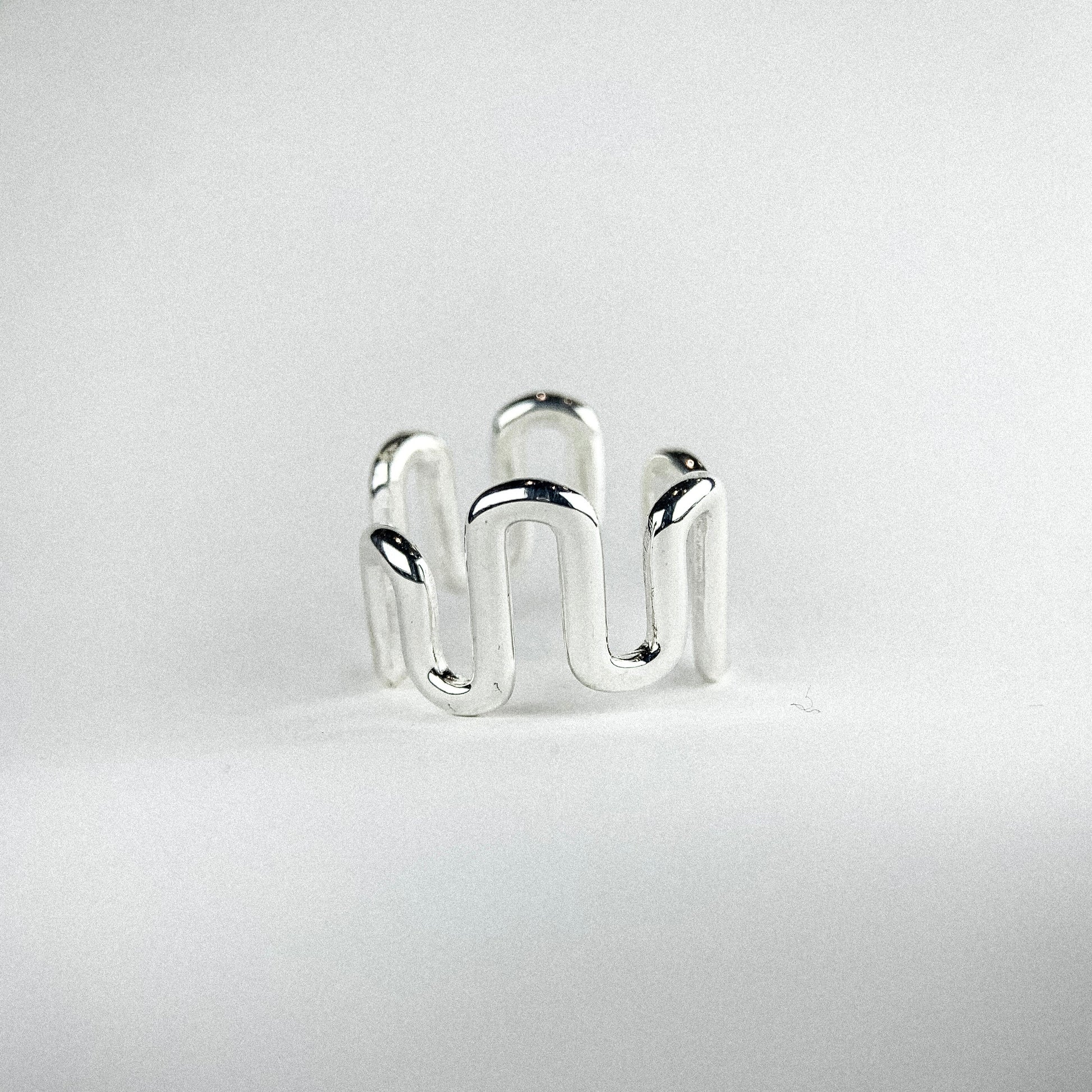 Inspired by the movement of electric currents and flowing lines, the Electric Capillary Ring features a sculptural, open design that feels both modern and organic. Handcrafted in sterling silver, its curved forms create a play of light and shadow that shifts with every angle. Perfect as a statement piece or paired with other minimalist rings for a layered look.