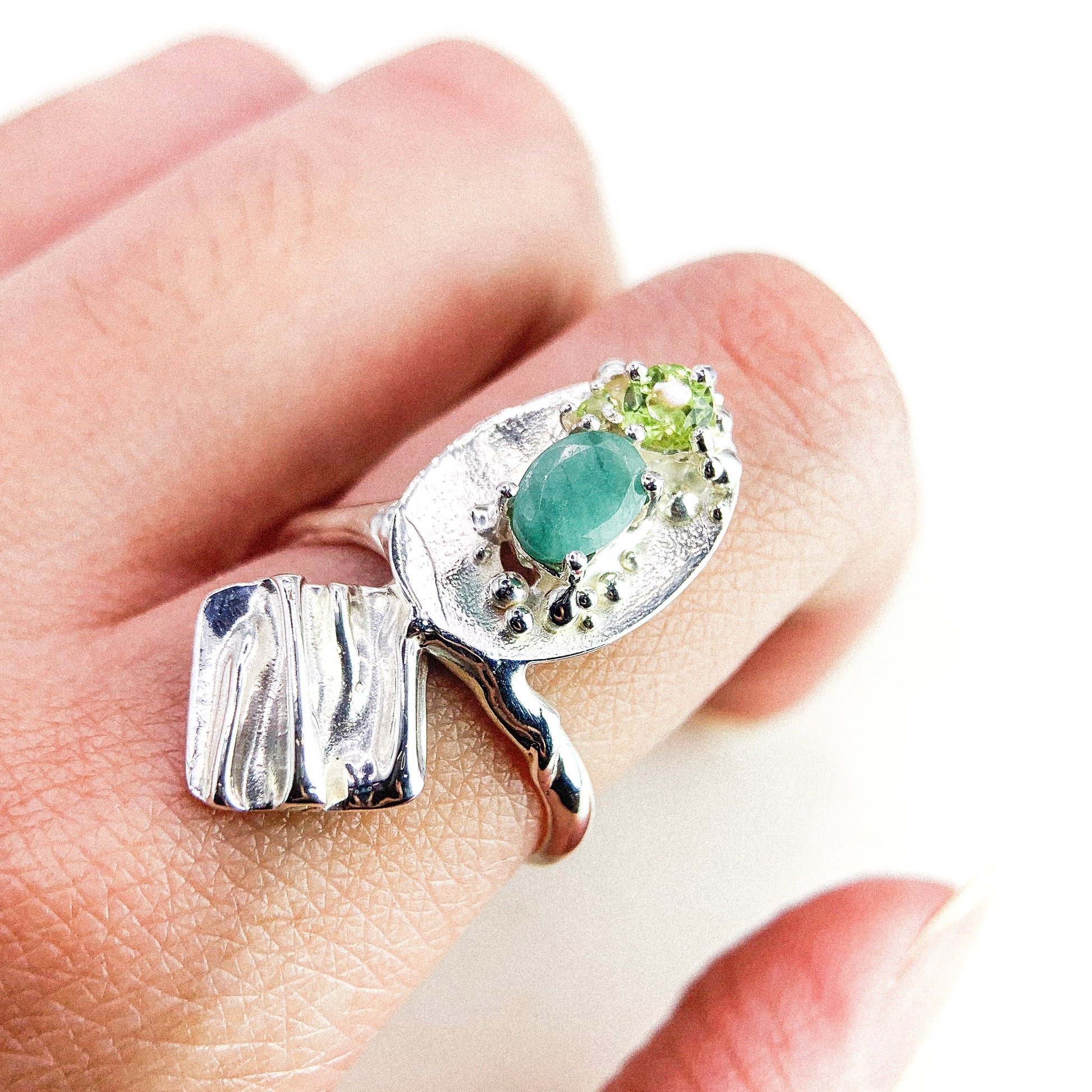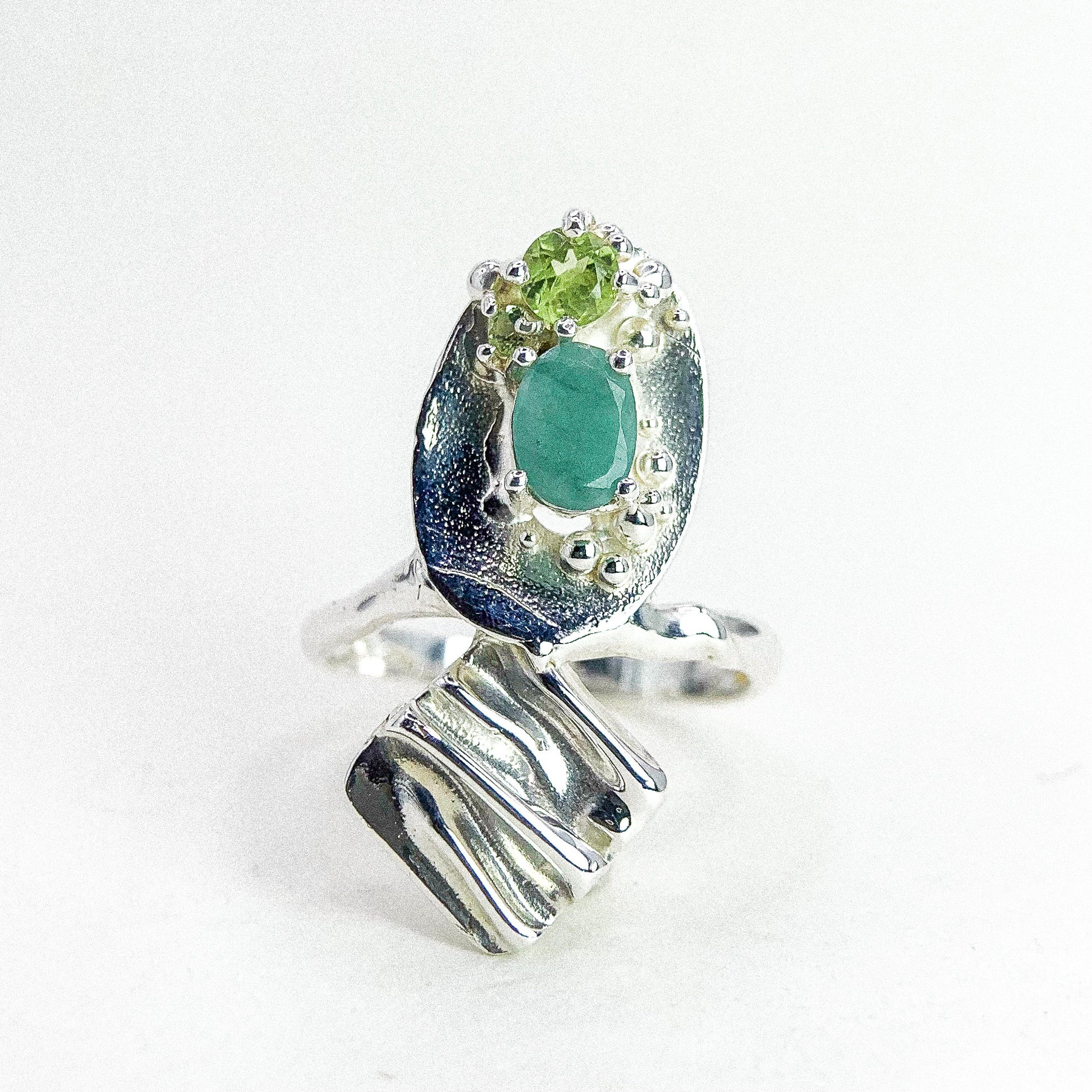 EMERALD AND PERIDOT SILVER RING