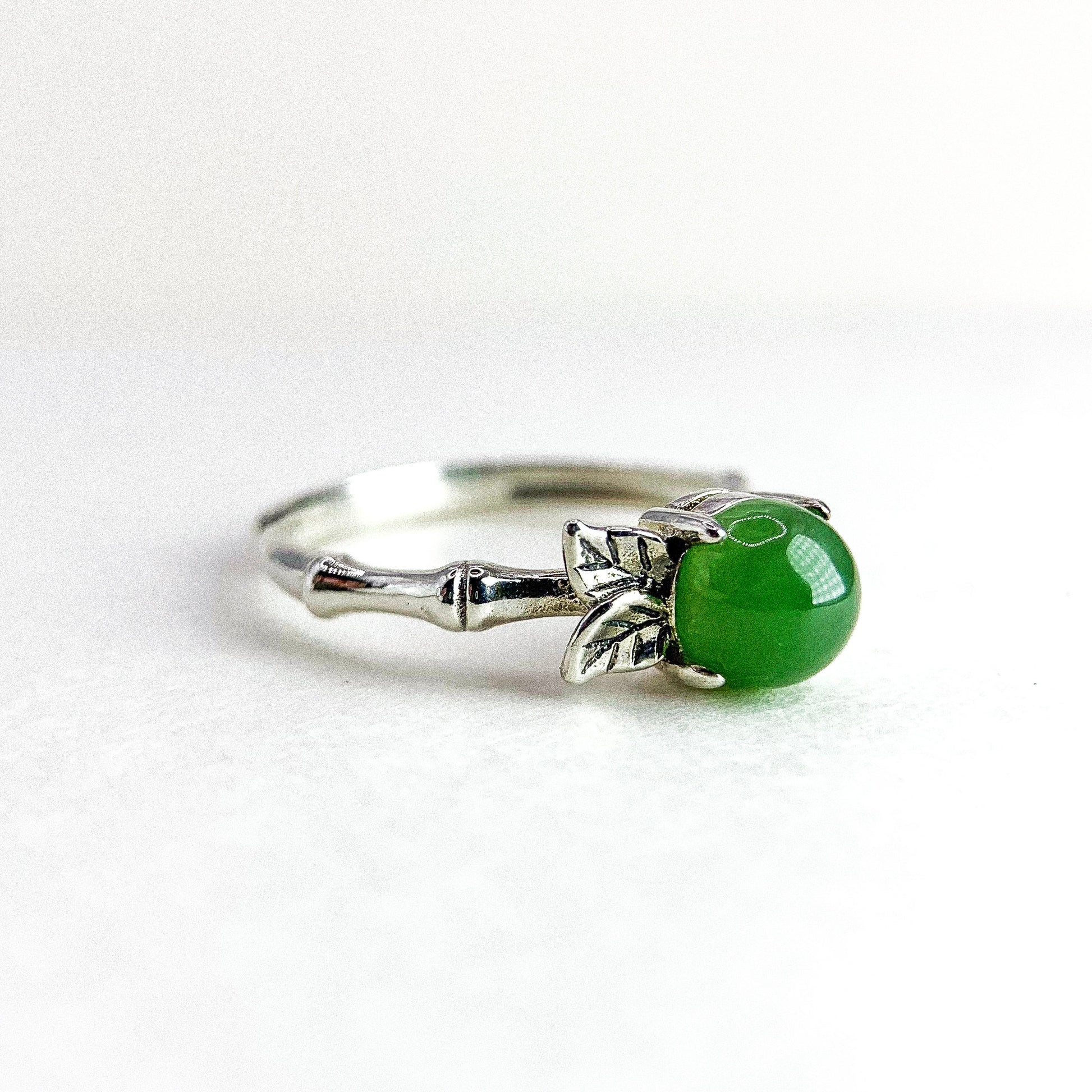 JADE BAMBOO LEAF SILVER RING