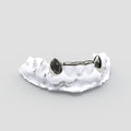 Placed on the lower jaw, this double-canine grillz features a clean silver cap structure connected by a subtle bridge, creating a low-profile silhouette that stays discreet at first glance — yet unmistakably bold up close.