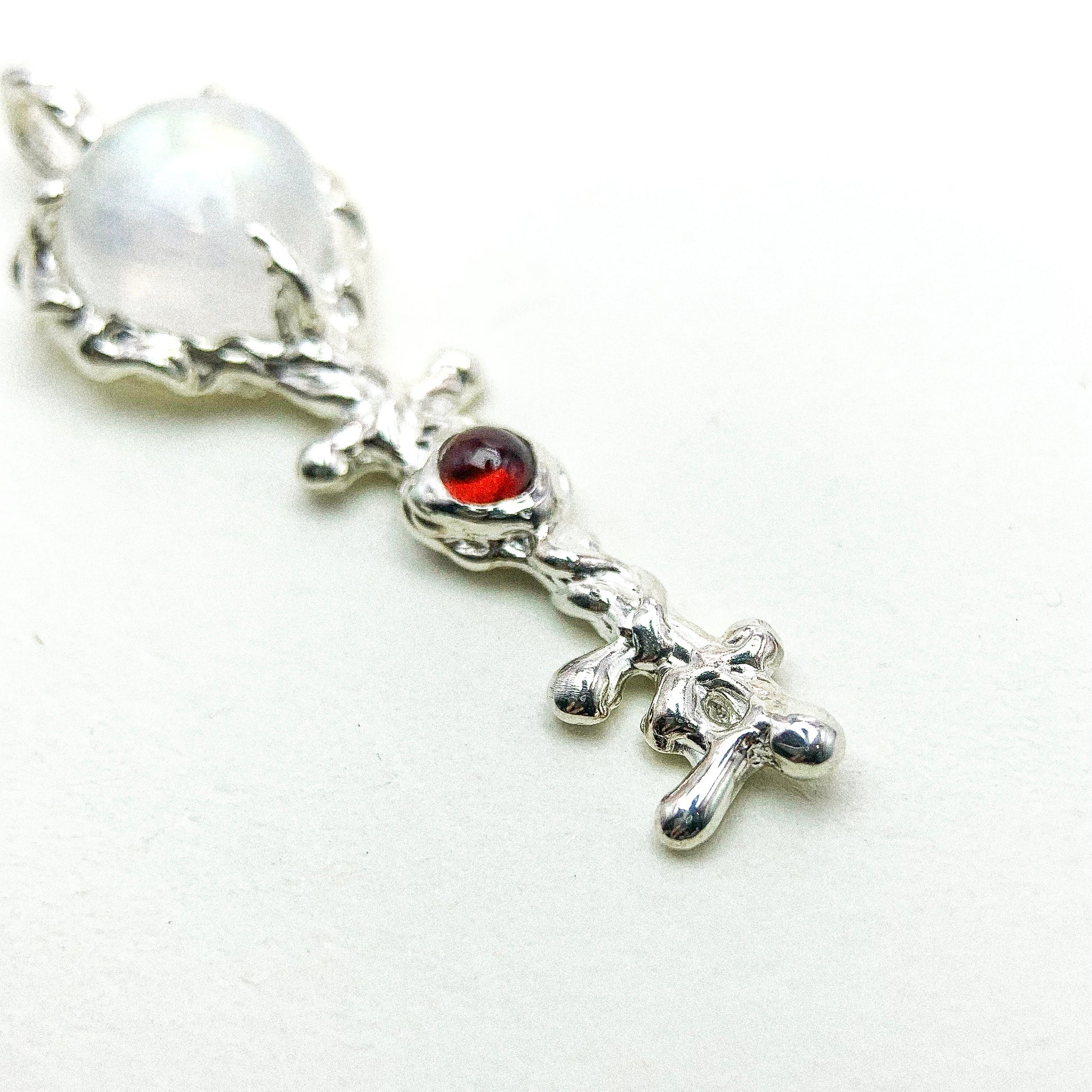 MOONSTONE AND GARNET KEY SILVER PENDANT