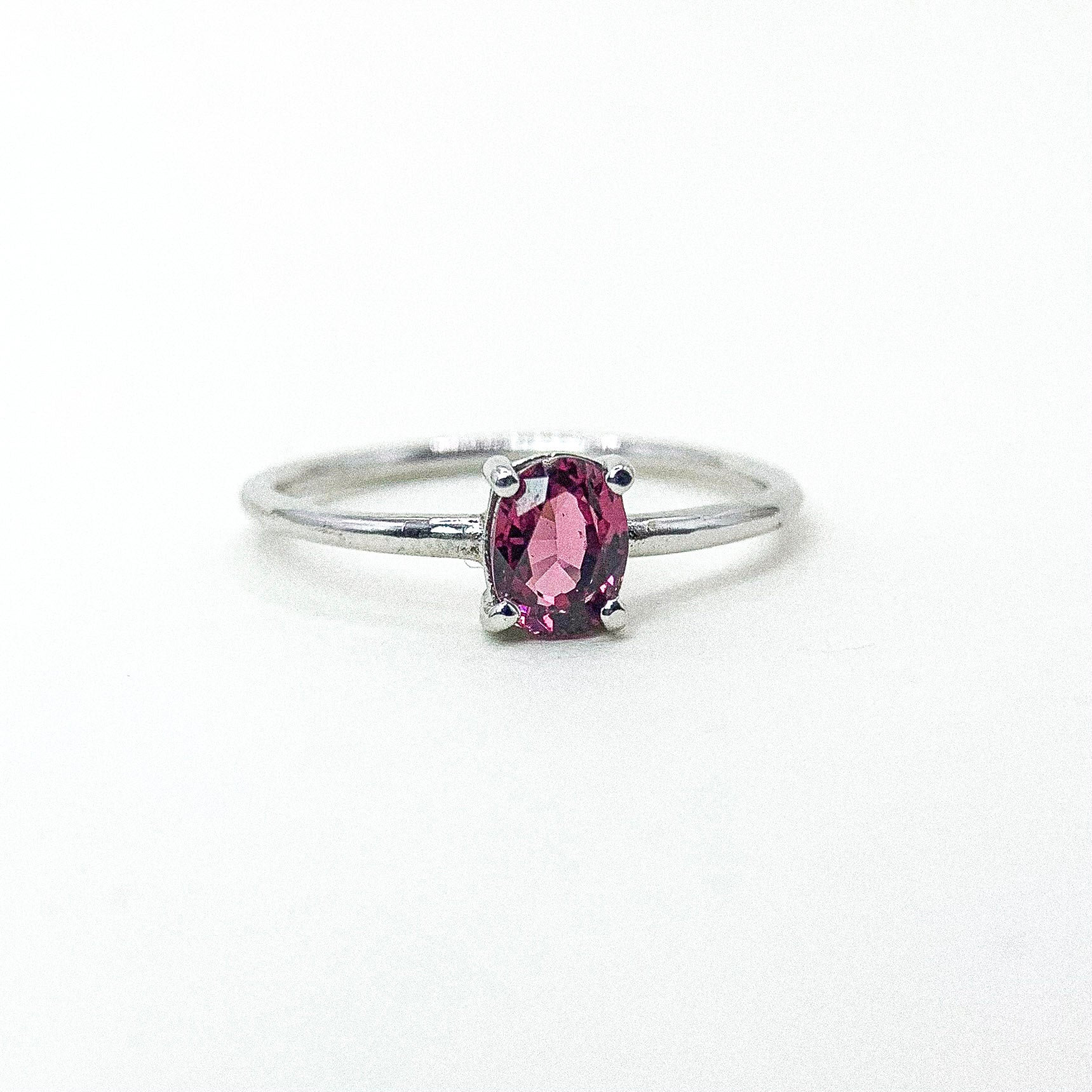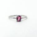 OVAL GARNET CLAW THIN BAND SILVER RING