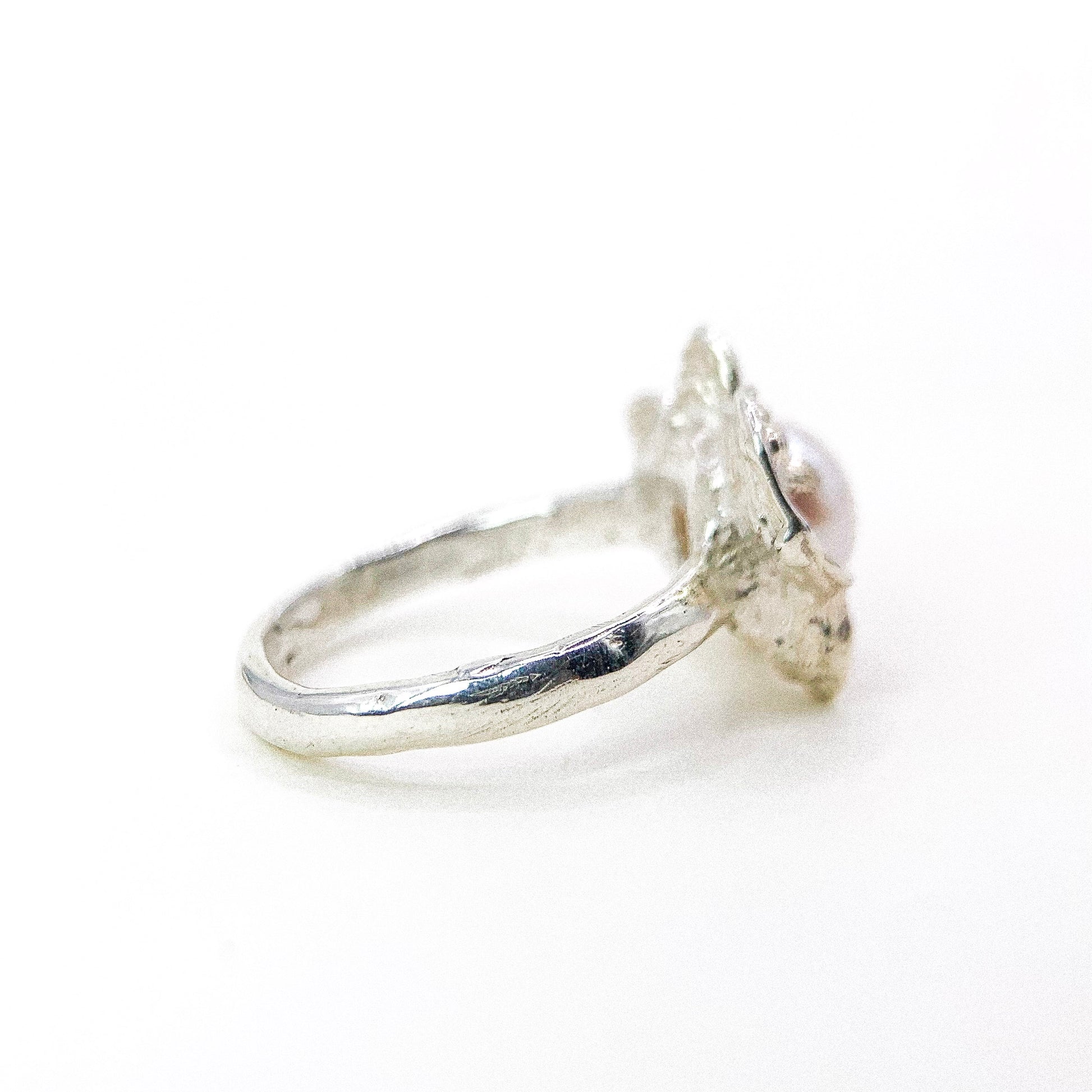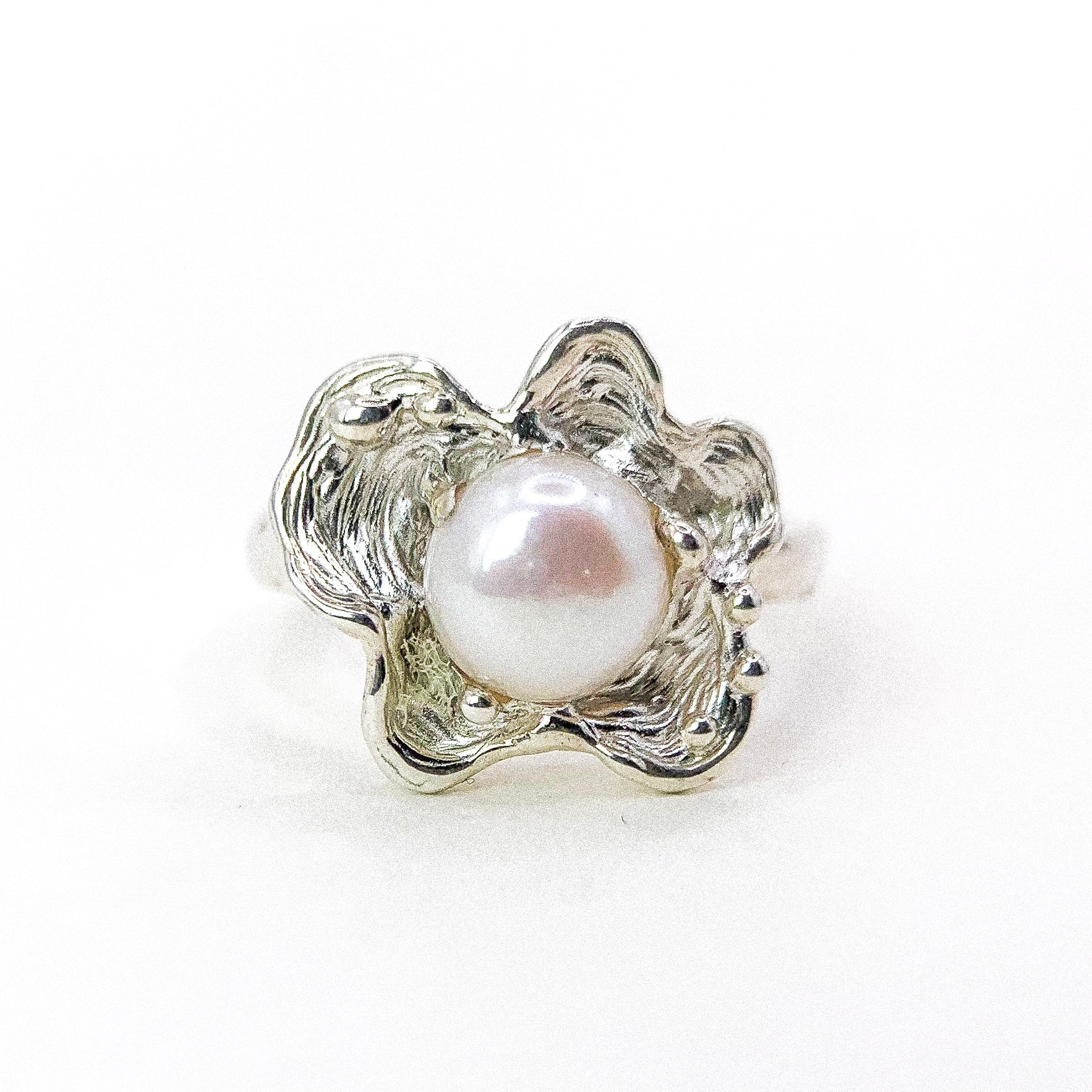 Design: Organic flower bezel with central pearl