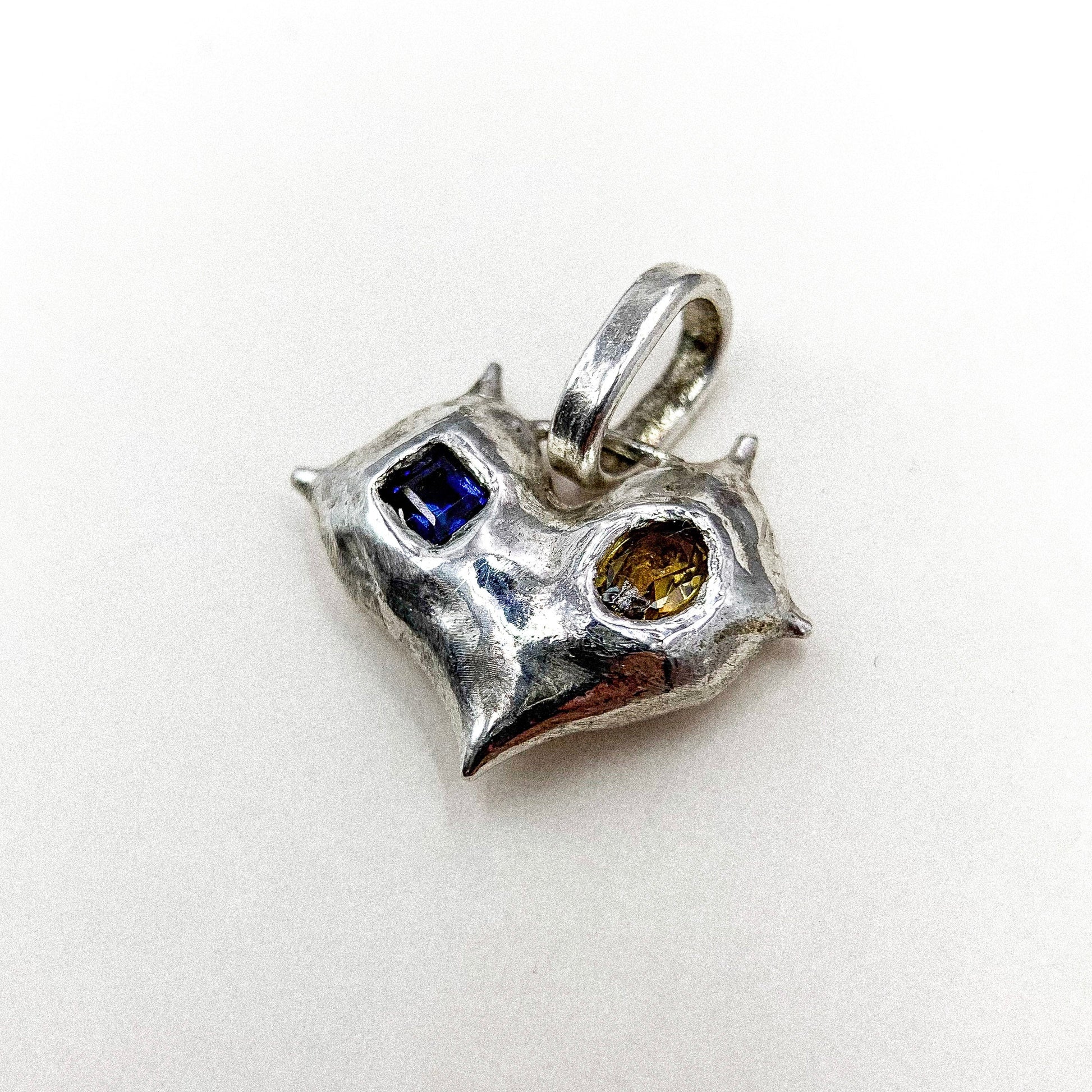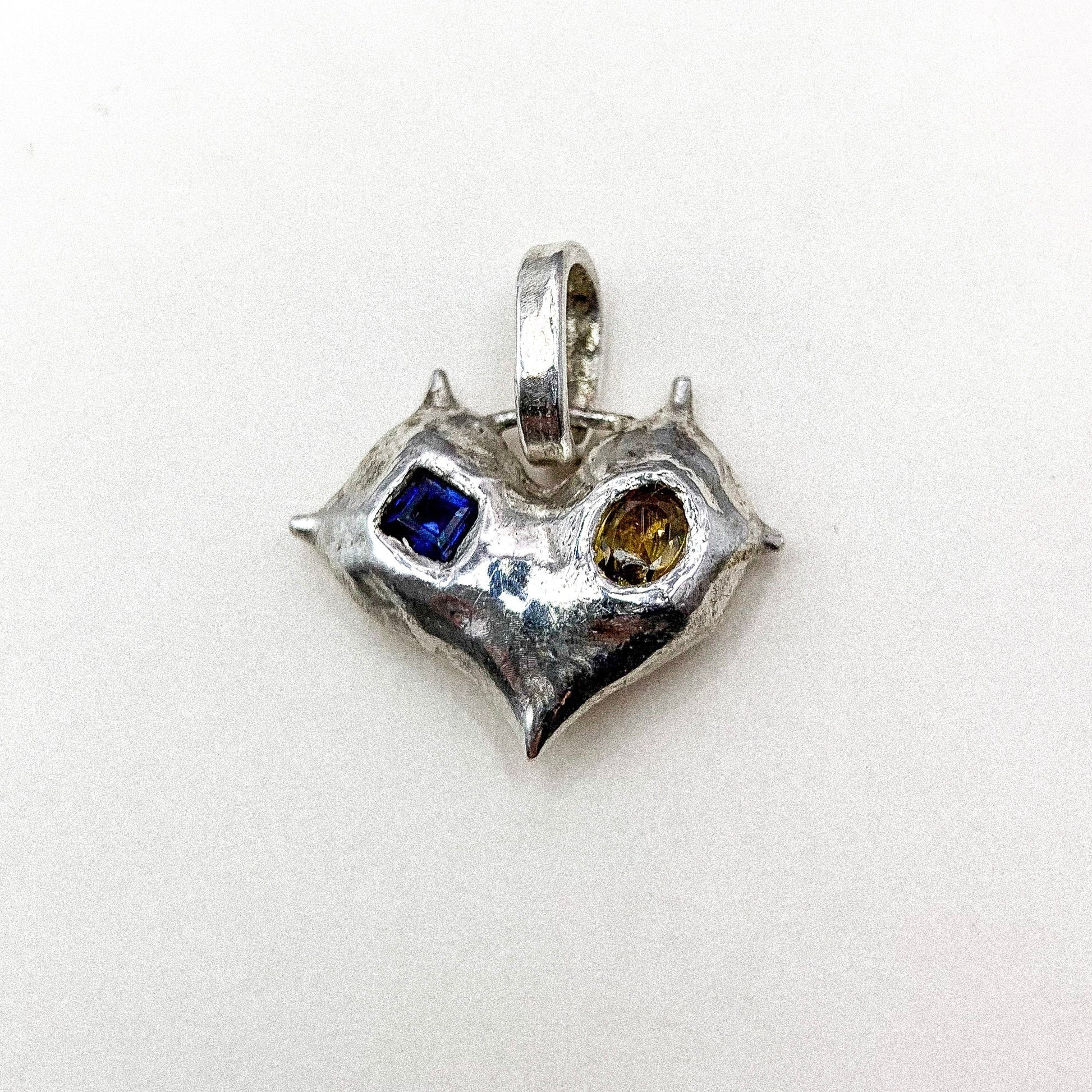 SAPHIRE WITH CITRINE HEART SILVER PENDANT