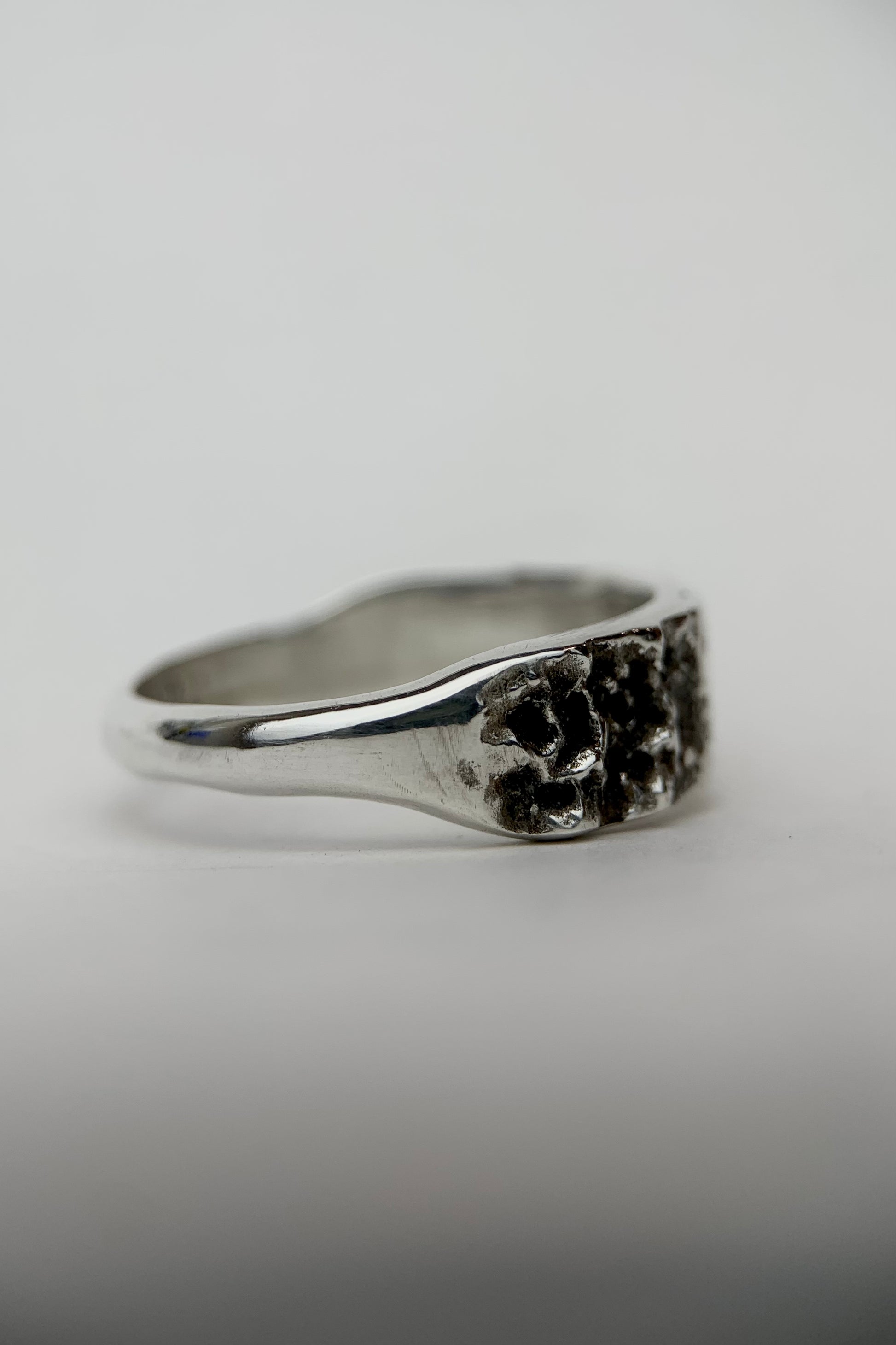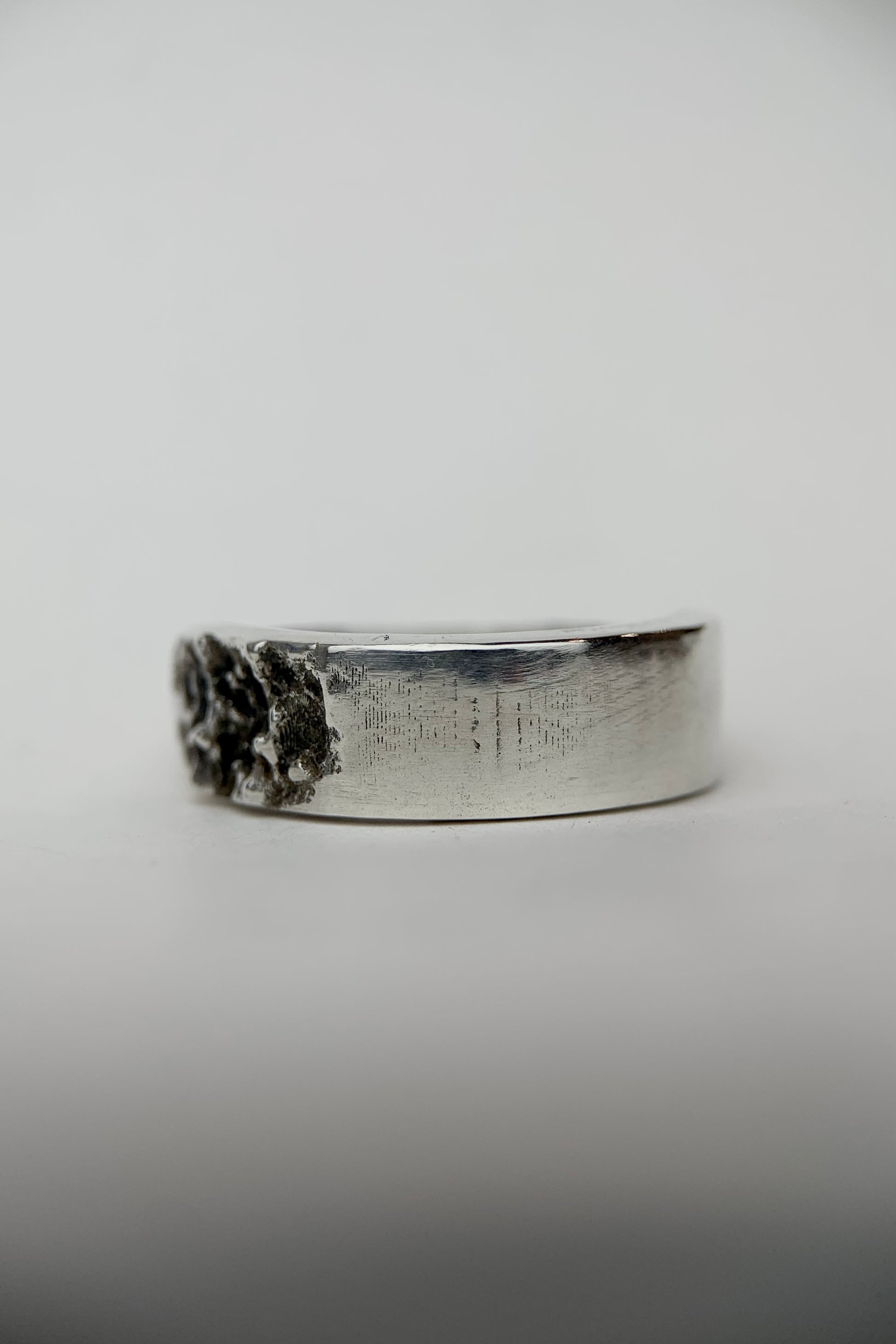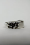 The Lava Trace Ring channels the raw power of nature’s elements. Handcrafted in sterling silver, its rugged surface is marked with molten-like textures, reminiscent of cooled lava and weathered stone. Each detail reflects organic imperfection, making this band a bold statement of strength, resilience, and individuality.