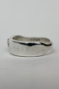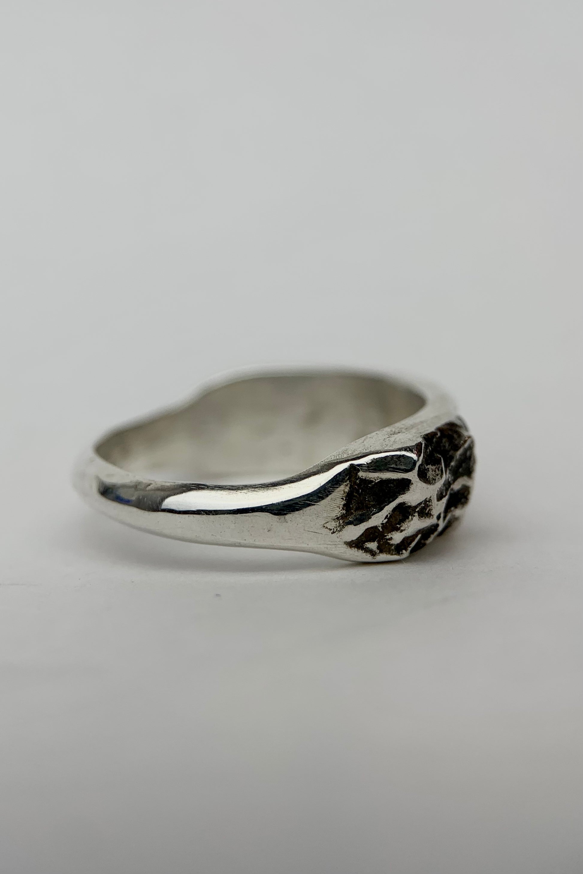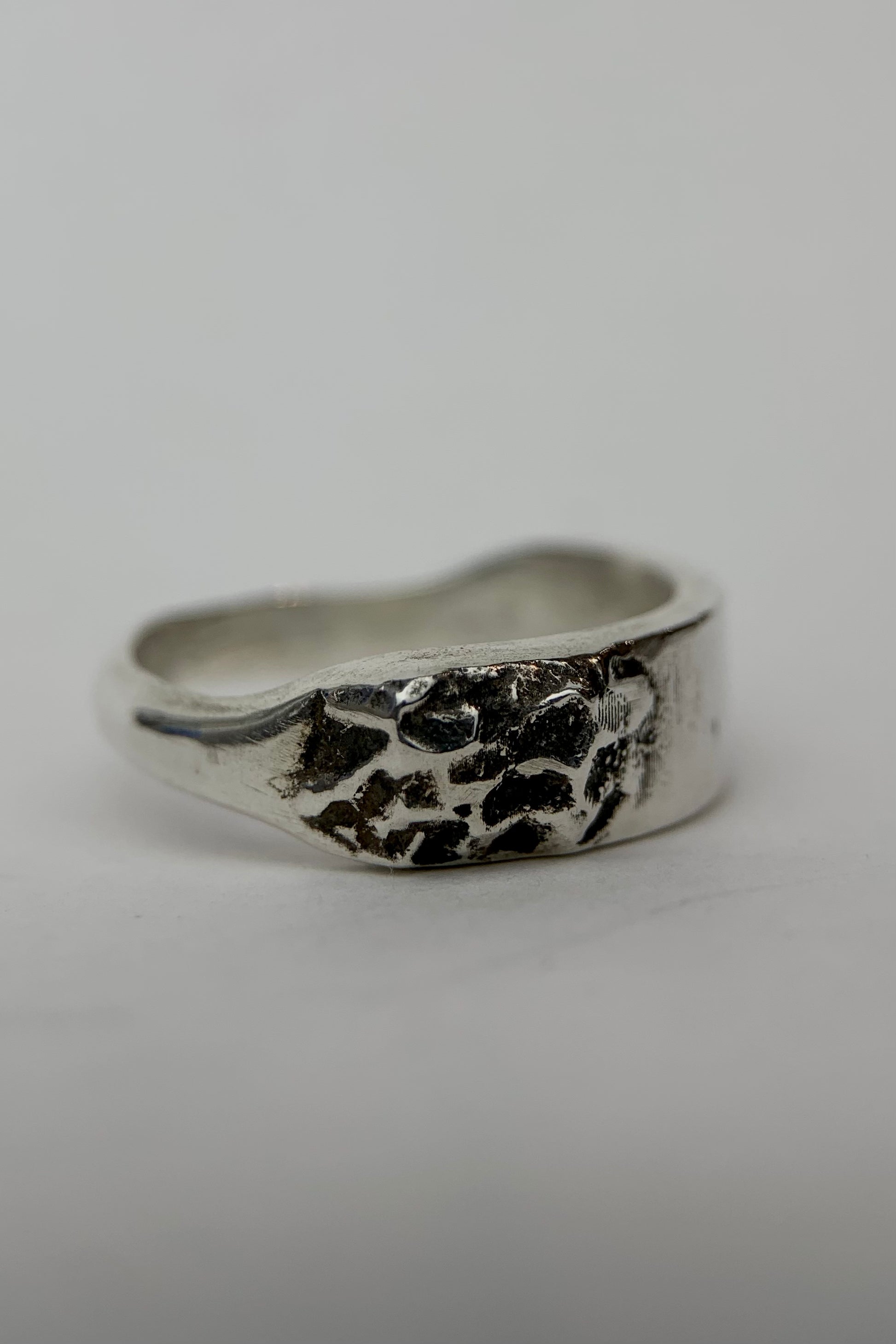 The Stone Trace Ring captures the rugged beauty of natural landscapes. Handcrafted in sterling silver, its textured surface mirrors the look of weathered rock and stone, giving each piece an organic and timeless character. The flowing band is both bold and understated, making it versatile enough for everyday wear while still standing out as a unique statement of artistry.