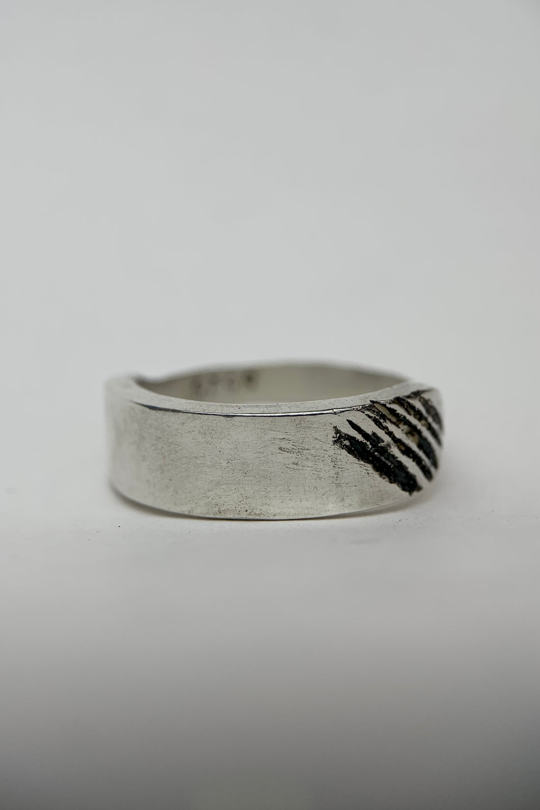 SILVER PITTED BAND RING