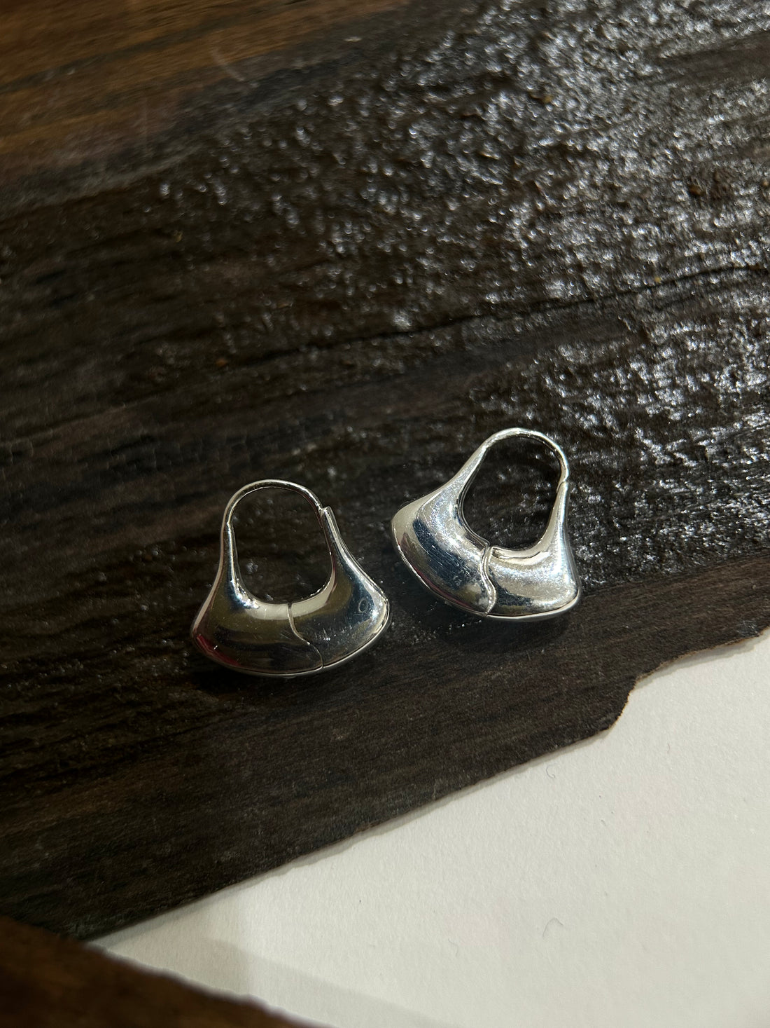 Material: Sterling silver Style: Sculptural hoop earrings shaped with soft curves, inspired by the silhouette...