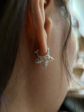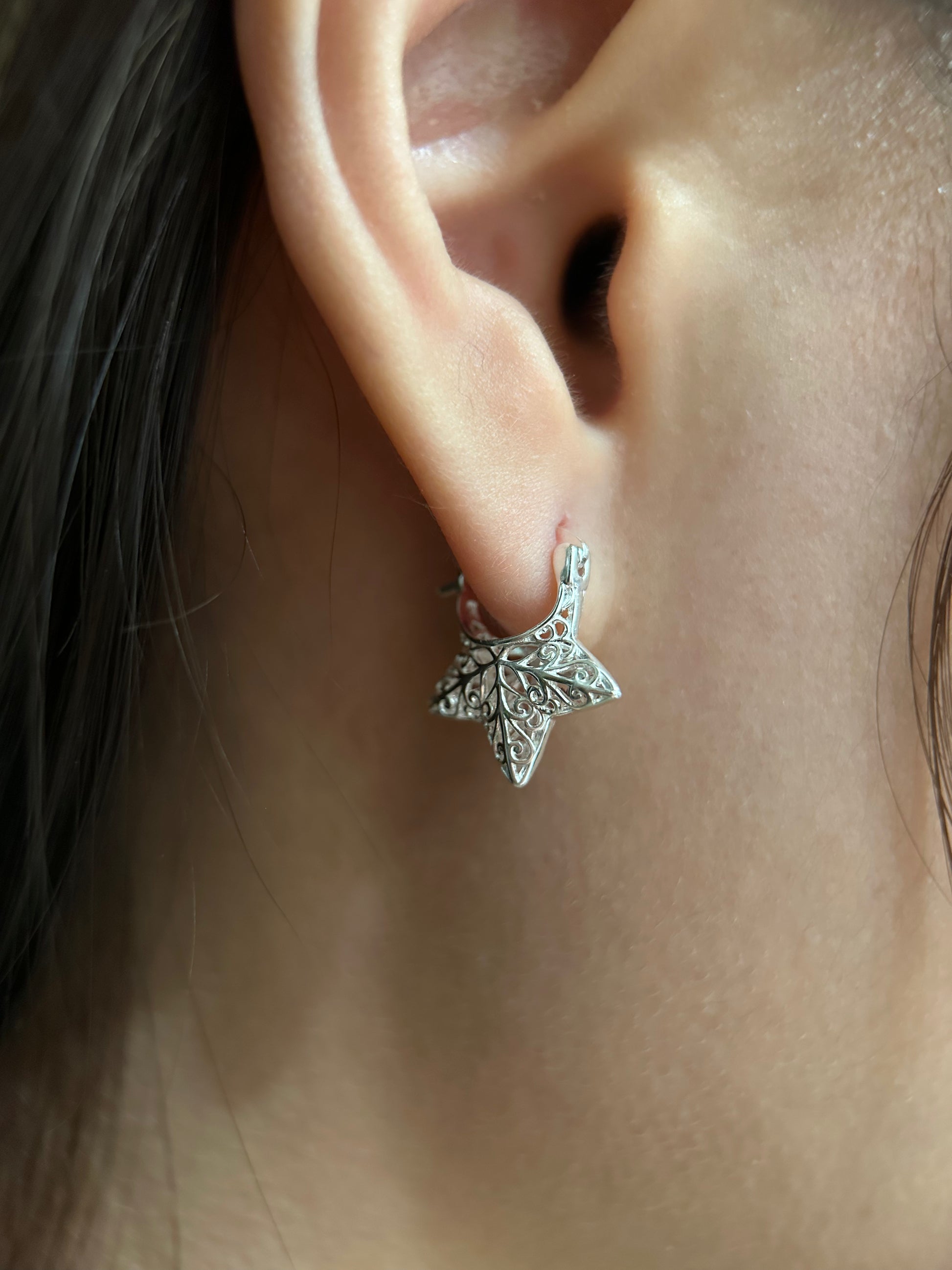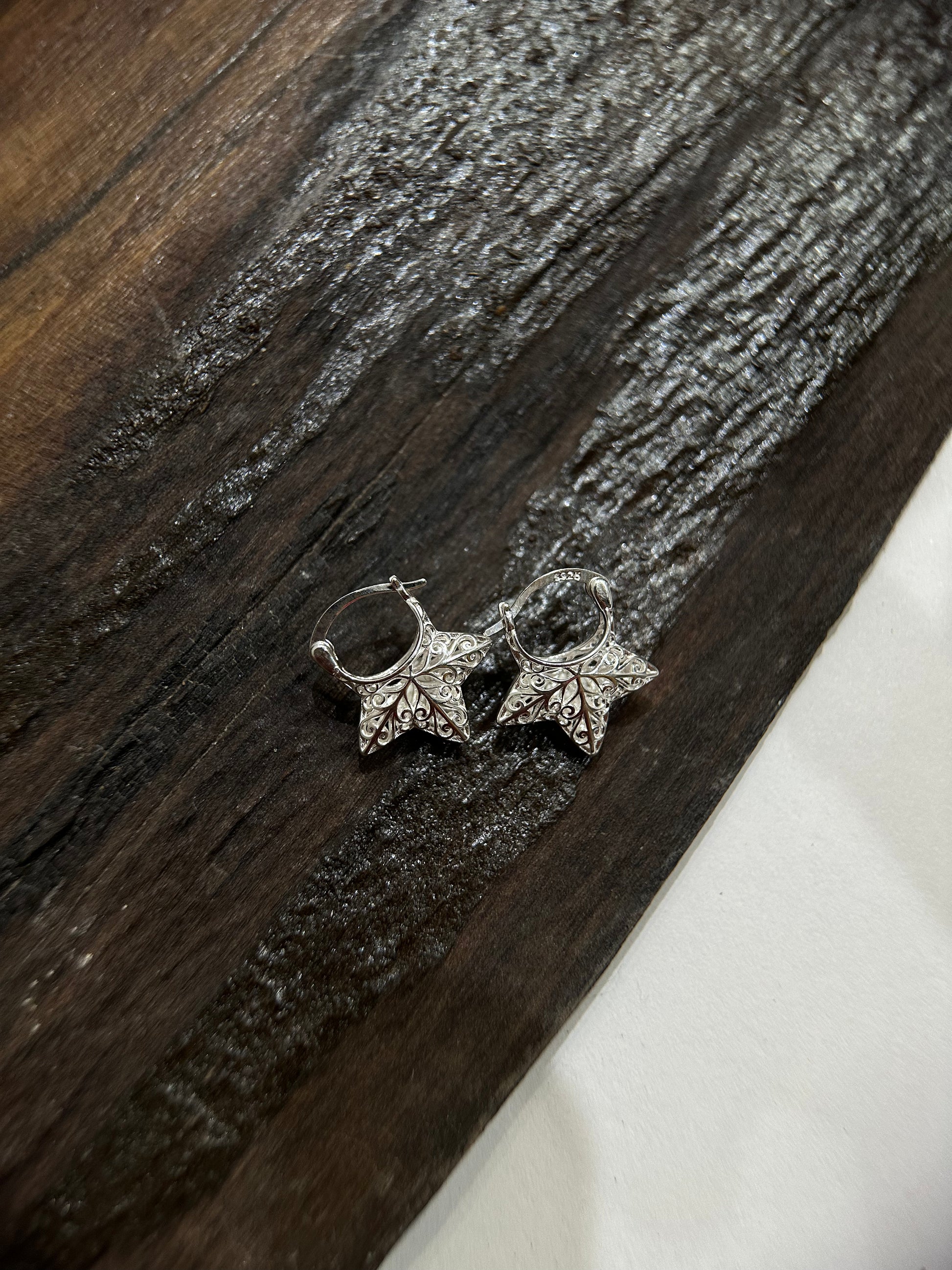 Style: Hoop earrings with detailed star-shaped drops featuring intricate surface patterns