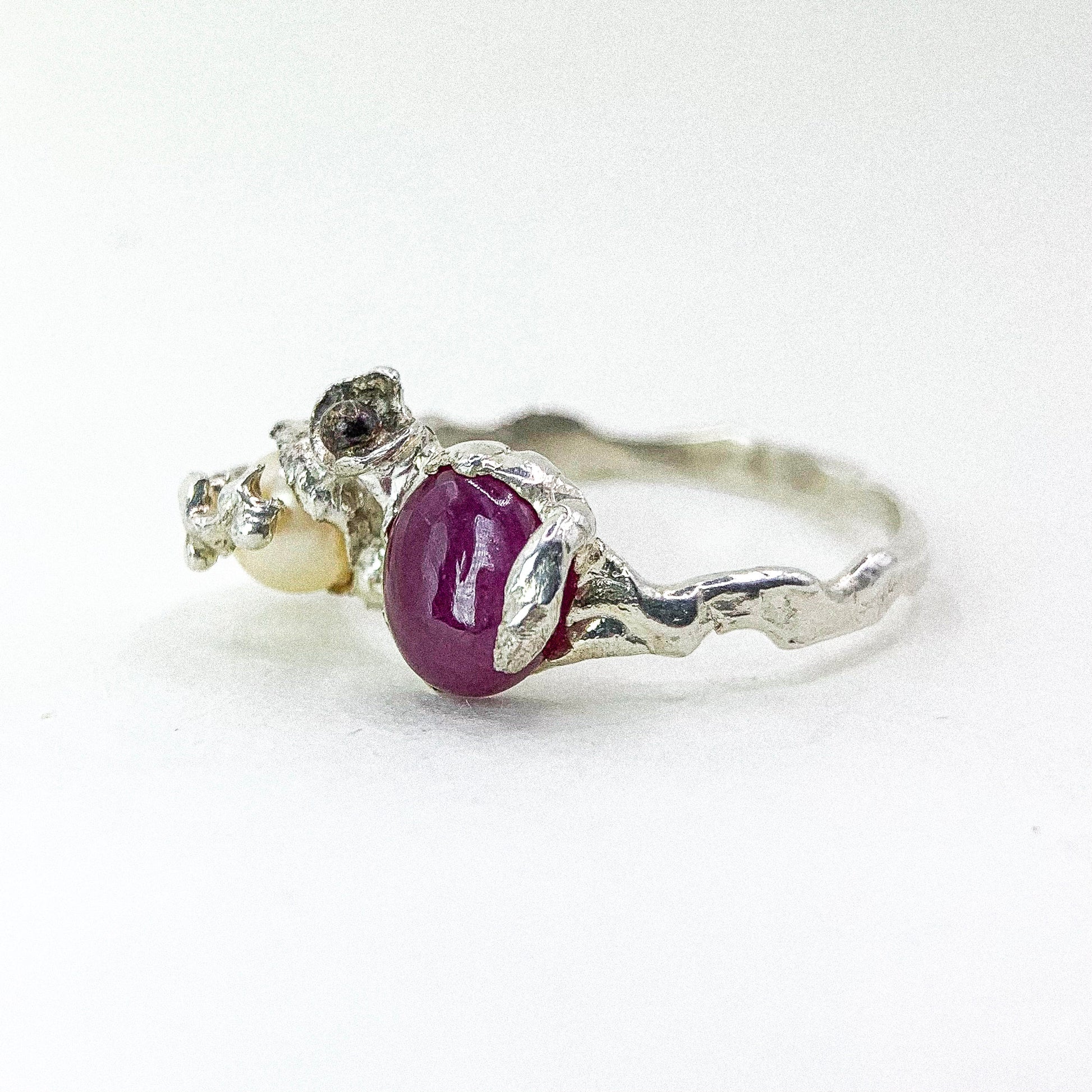 RUBY & PEARL SILVER RING