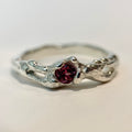 The Scarlet Essence Silver Ring is a celebration of timeless beauty and refined craftsmanship. Handcrafted from sterling silver 925, this elegant design features a vivid red garnet stone, symbolizing passion, energy, and inner strength. Along the band, delicate bubble-like accents shimmer like droplets of light, enhancing the brilliance of the garnet and adding a touch of artistry.